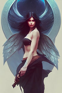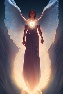 represents the celestial guide of conception, birth, and destiny. Lailah is depicted as a radiant angelic figure, clothed in flowing white robes, which symbolize purity, spiritual grace, and the angelic realm. Her wings, softly outstretched, signify protection and the ability to transcend earthly limitations.